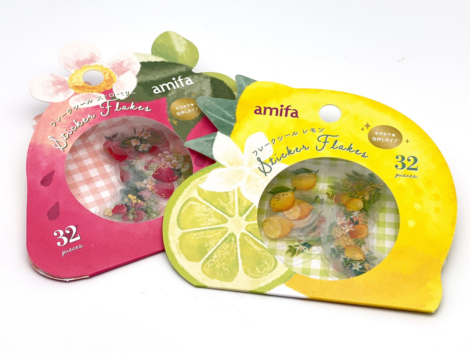Erdbeeren und Zitrone Folien- Sticker / Aufkleber je 40 Stück