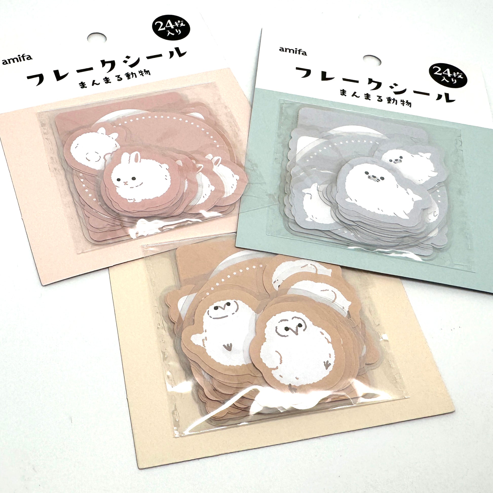 🐰🦉🦭 Papieraufkleber, Etiketten auf Trägerfolie – 3er-Set mit Tiermotiven