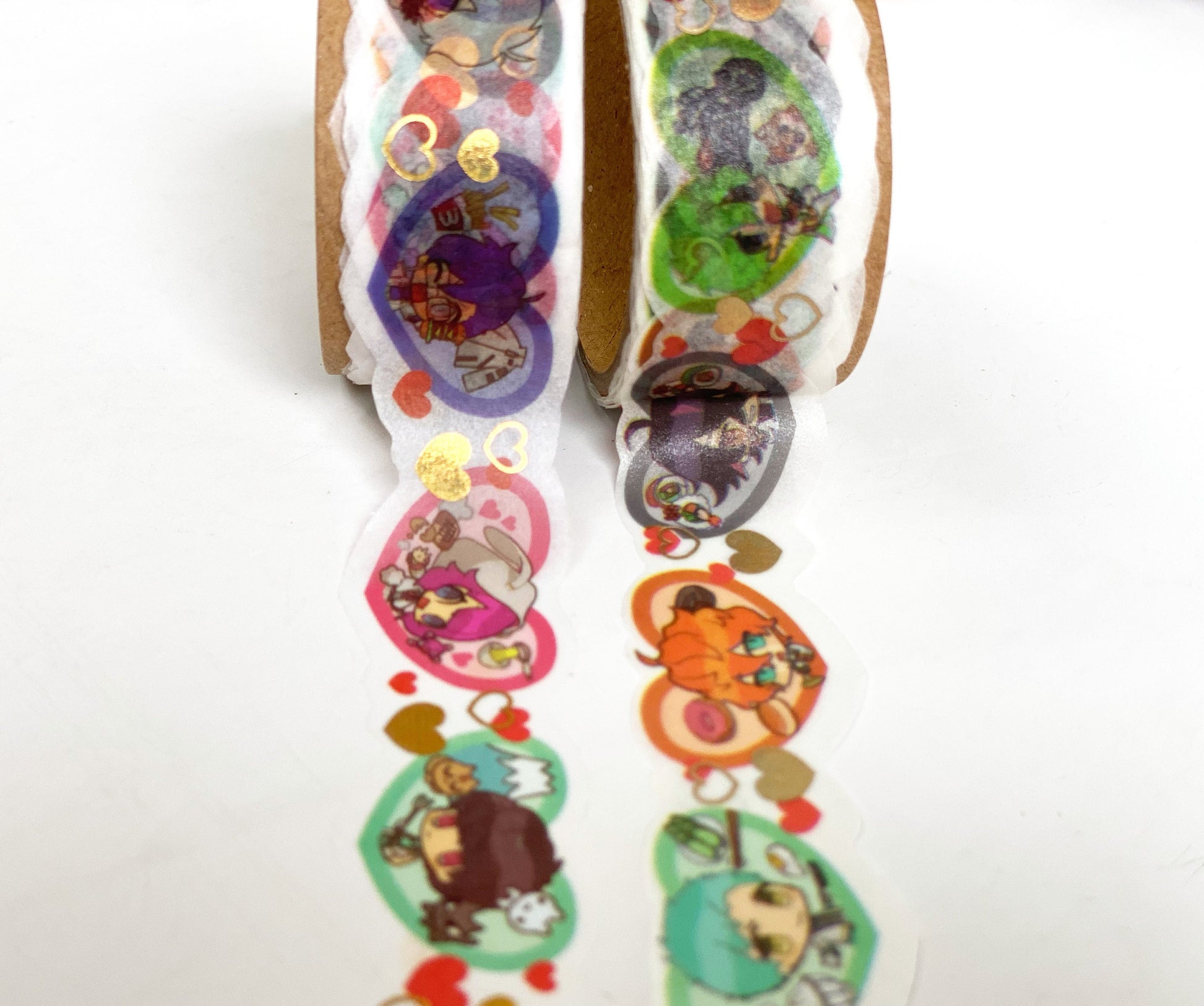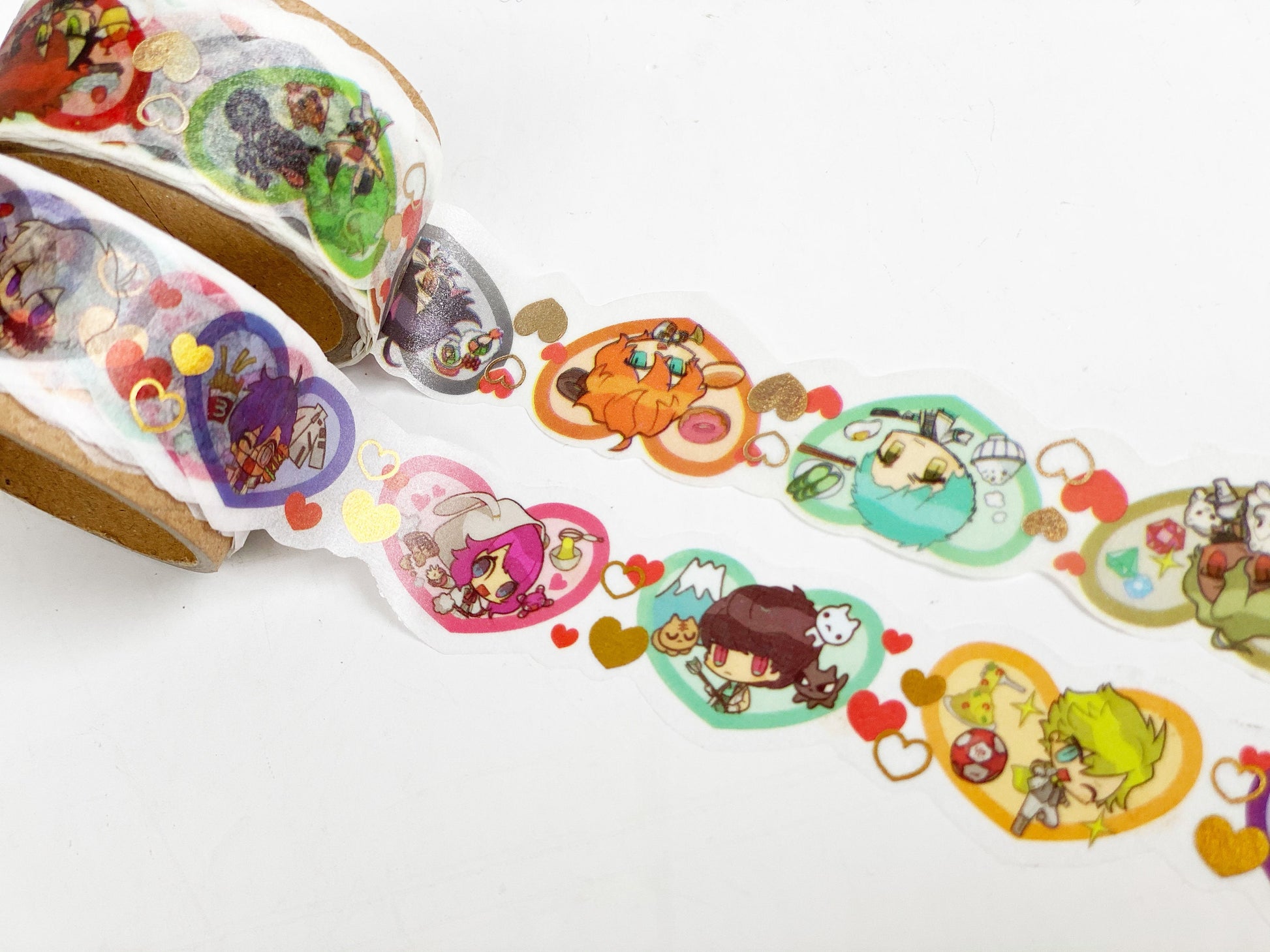 -Manga Masking Tape / Washi Tape ist ein leicht von Hand zu reißendes Klebeband aus Reispapier. Hier mit Konturgeschnitten und mit Folienapplikationen. Es hat eine matte Oberfläche, ist leicht transparent und klebt auf Grund seines besonderen Klebers auf vielen verschiedenen Flächen. Es ist ohne Reste zu hinterlassen ablösbar und wiederverwendbar.