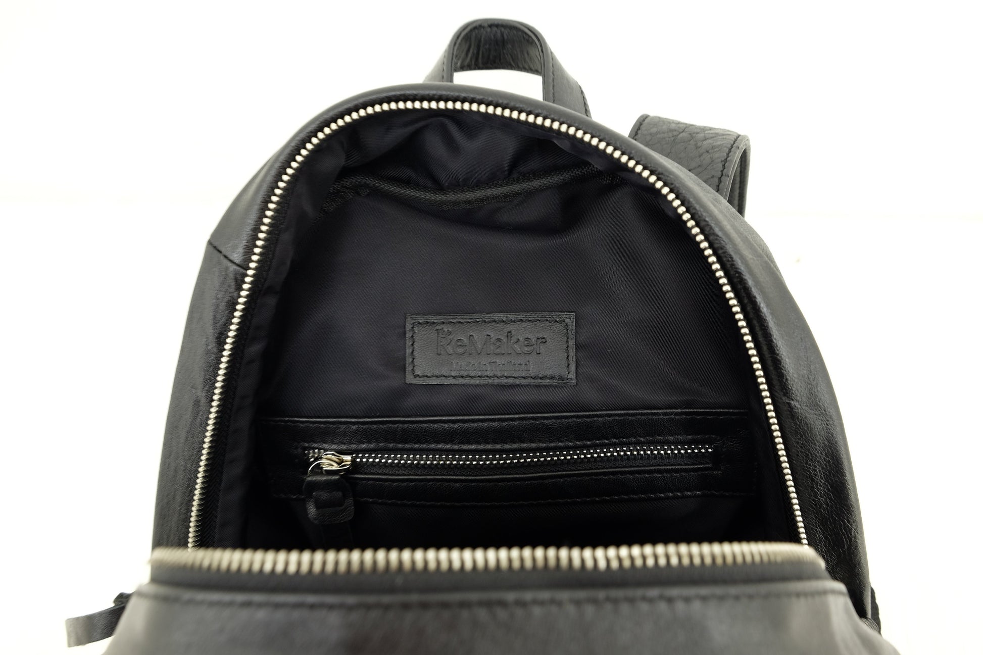 Rucksack für den täglichen Gebrauch aus schwarzem recyceltem Leder.