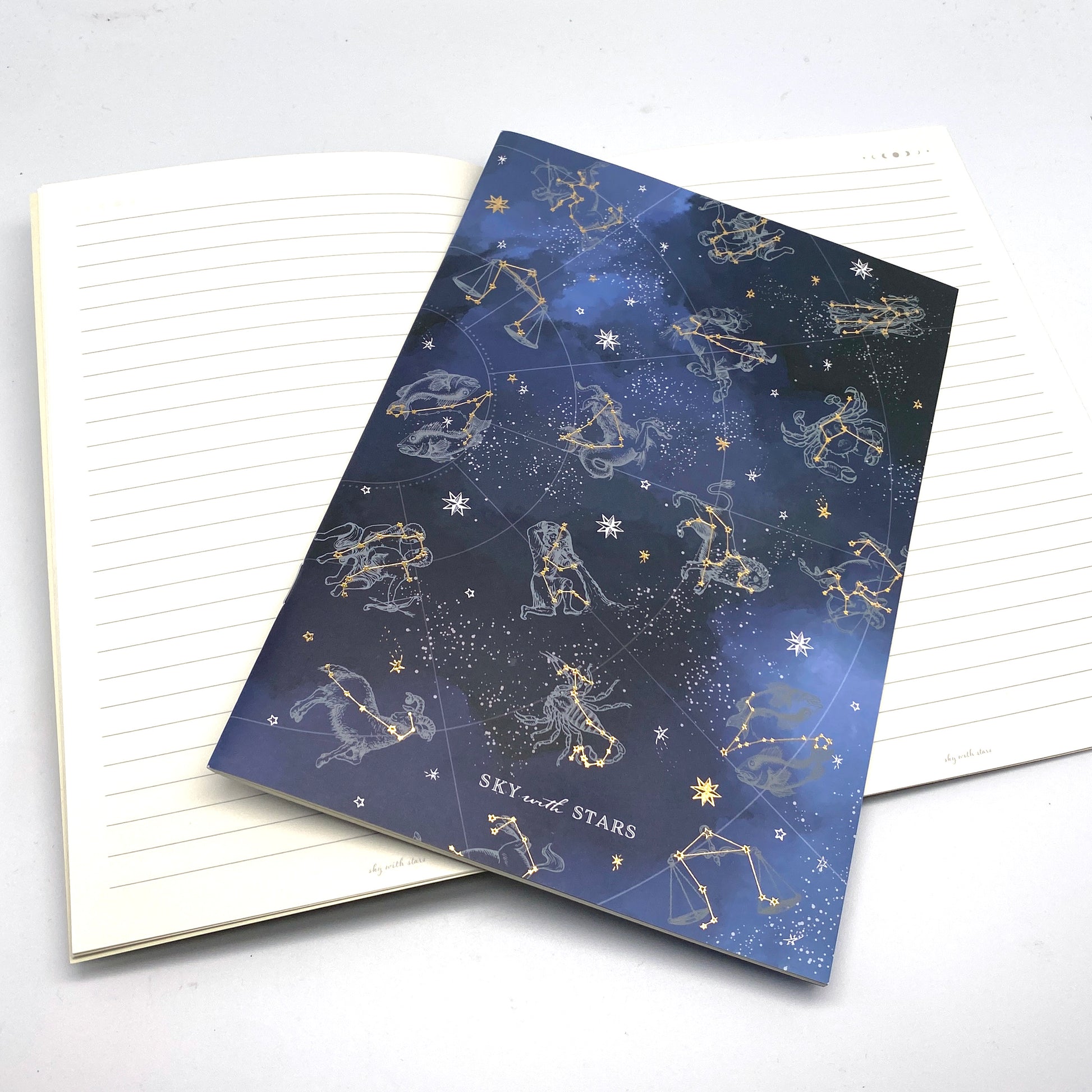 Blau Sky with Stars: Sternzeichen mit Gold Applikationen, Innenseiten liniert